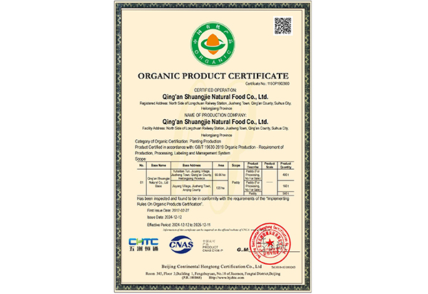 雙潔米業(yè) SHUANG JIE MI YE 您現(xiàn)在的位置:網(wǎng)站首頁 > 雙潔米業(yè) > 資質(zhì)榮譽(yù) 公司介紹 企業(yè)文化 領(lǐng)導(dǎo)致辭 資質(zhì)榮譽(yù) 員工風(fēng)采 生態(tài)原產(chǎn)地產(chǎn)品保護(hù)證書 有機(jī)產(chǎn)品認(rèn)證證書 有機(jī)產(chǎn)品認(rèn)證證書 有機(jī)產(chǎn)品認(rèn)證證書 有機(jī)產(chǎn)品認(rèn)證證書 環(huán)境管理體系認(rèn)證證書 共54條記錄 當(dāng)前為第1頁/共9頁上一頁1234...9下一頁